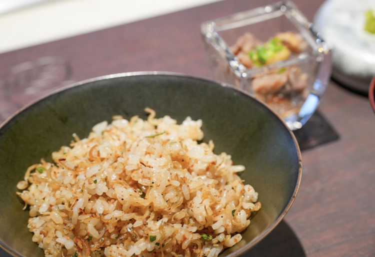 (平飼い有精卵の卵かけご飯 または ガーリックライスもお選び頂けます。)